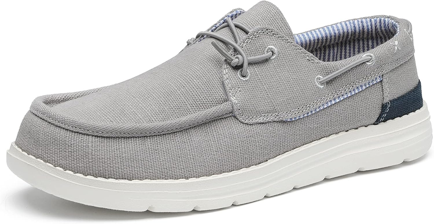 • Trendy Design: Moc toe and lacing around heel bring boat shoes style. Slip-on design makes it easy to take on and off. You can adjust the elastic shoelaces and knot the lace for a better fit.