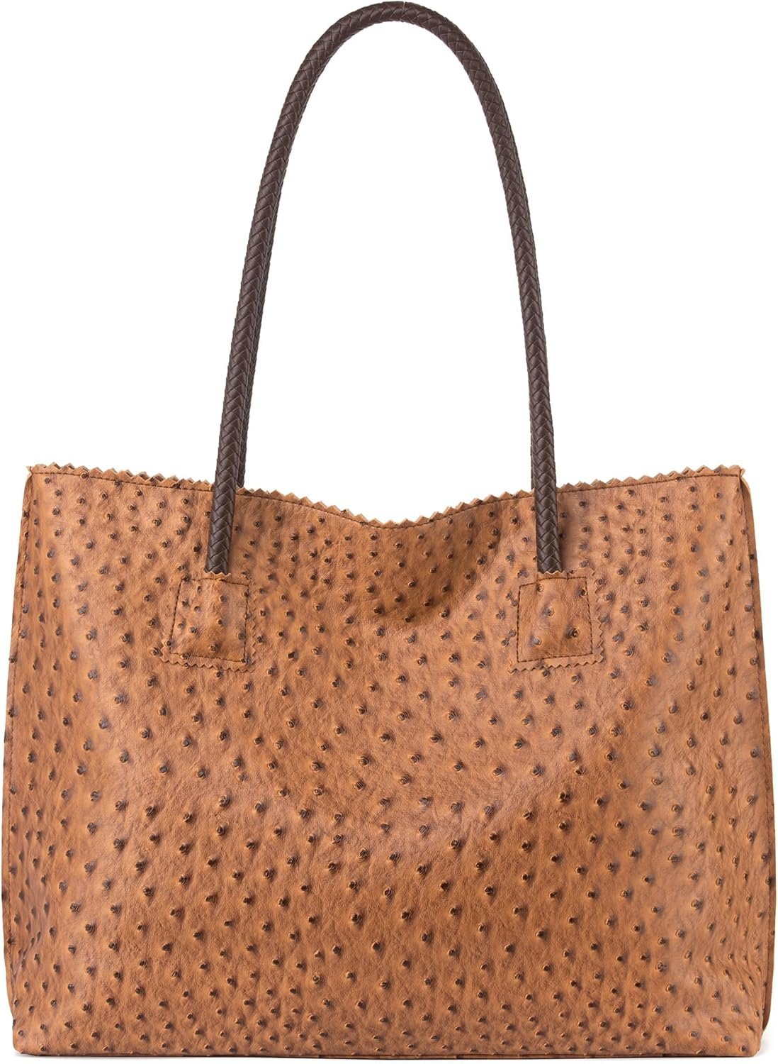 - tote bag blends personality with everyday style. Trimmed in ostrich vegan leather and featuring braided handles for comfortable shoulder wear, this style bag has a top zipper closure. The leopard print lining and interior pockets ensure both style and organization. Ideal for casual outfits, this bag combines fashion and function effortlessly
