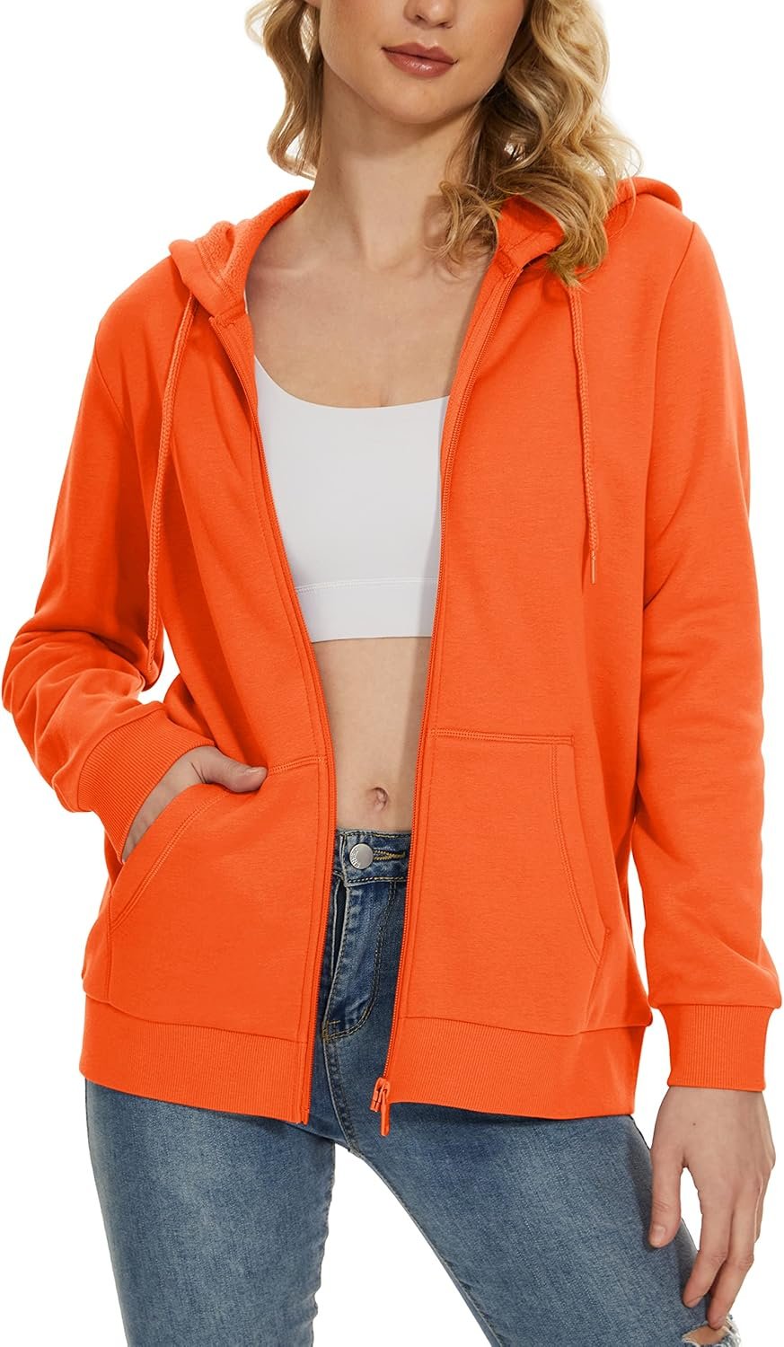 Women’s Fleece Lined Zip Up Hoodies Casual Hooded Jacket Workout Full Zip Sweatshirts Pocket Coats