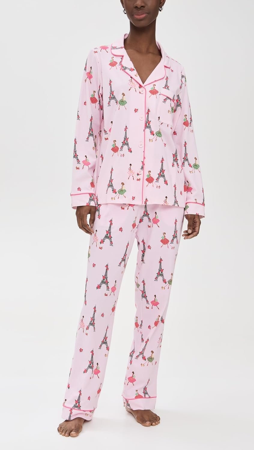 Women’s Long Sleeve Cotton Knit Classic Pajama Set